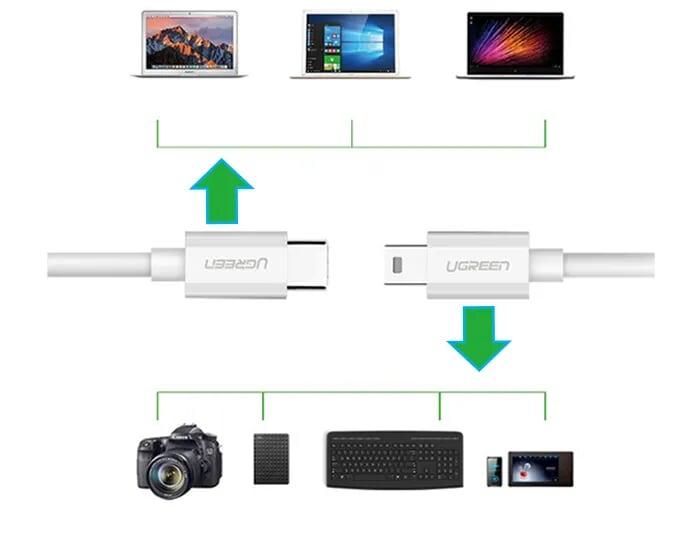 Ugreen 40418 Usb 2.0 To Micro Usb + Type C Data Cable White 1.5M Us142 1. Features: connect Laptop, Tablet USB-C port to digital camera, DSLR, music player, GPS Mini USB port 2. Cable length: