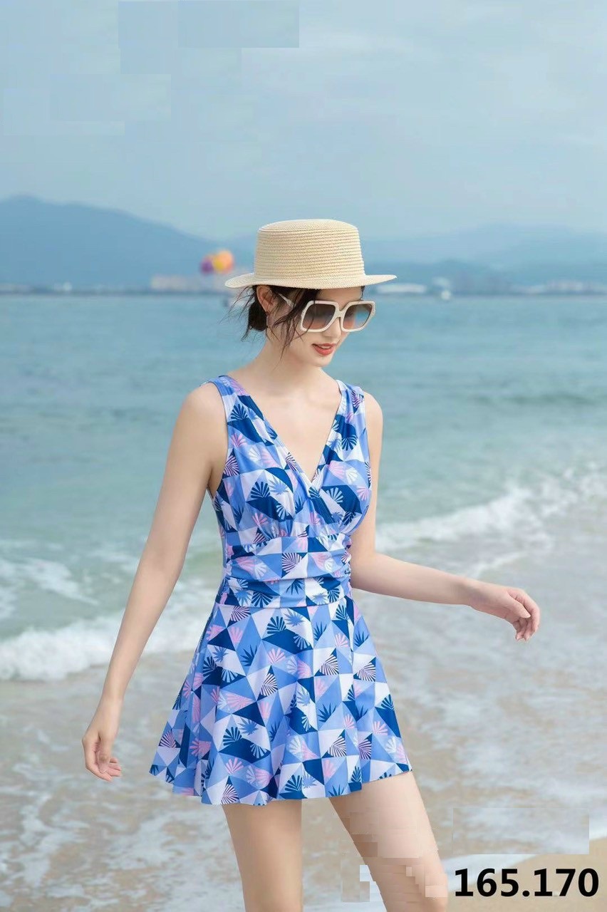 Váy đi biển đi bơi nữ liền thân họa tiết hot trend 2022 thanh lịch.