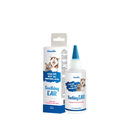 Nhỏ một lượng dung dịch vừa đủ dọc theo vành tai và ống tai thú cưng rồi xoa đều, sau đó vệ sinh lại bằng bông gòn.