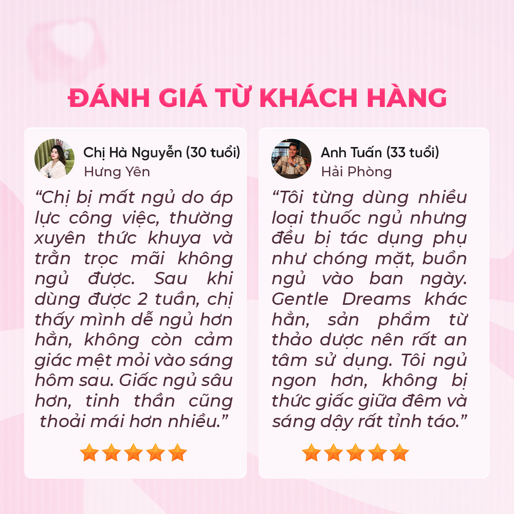 - Thông tin: Viên uống cải thiện tình trạng mất ngủ và ngủ kém Powergra Gentle Dreams là giải pháp từ thiên nhiên, dành riêng cho những ai đang chật vật với giấc ngủ chập chờn, khó ngủ hay thức dậy giữa đêm. Với công thức kết hợp từ 8 thảo dược quý như Lạc tiên, Nữ lang, Viễn chí, Cúc la mã… cùng Magnesi và Vitamin B6, sản phẩm giúp làm dịu hệ thần kinh, điều hòa cảm xúc và khôi phục nhịp sinh học tự nhiên. Không gây buồn ngủ cưỡng bức hay lệ thuộc như thuốc an thần, Powergra Gentle Dreams hỗ trợ bạn đi vào giấc ngủ sâu một cách tự nhiên, phục hồi năng lượng và tỉnh táo vào sáng hôm sau. Sản phẩm đặc biệt phù hợp với người mất ngủ do căng thẳng, người lao động trí óc, người lớn tuổi hoặc ai đang tìm kiếm một giải pháp hỗ trợ giấc ngủ an toàn, nhẹ nhàng và bền vững. Được chứng nhận bởi FDA, GMP, ISO 22000, HACCP và COA – Powergra Gentle Dreams là lựa chọn đáng tin cậy cho hành trình chăm sóc giấc ngủ mỗi ngày. Thành phần: Lạc tiên, nữ lang, cúc la mã, viễn chí, sơn tra, nấm hầu thủ, vitamin B6. Đặc điểm: Giúp cải thiện chất lượng giấc ngủ, hỗ trợ ngủ sâu và ổn định nhịp sinh học. Làm dịu hệ thần kinh, giảm lo âu, căng thẳng và hỗ trợ trí nhớ. Tăng khả năng tập trung, giảm mệt mỏi kéo dài, giúp tinh thần minh mẫn và tỉnh táo vào ngày hôm sau. Cách dùng: Uống 2 viên mỗi ngày, vào buổi tối trước khi đi ngủ khoảng 30 phút. Sử dụng đều đặn mỗi ngày để cảm nhận rõ sự thay đổi về chất lượng giấc ngủ. Lưu ý sử dụng: Không dùng cho phụ nữ mang thai hoặc cho con bú, người mẫn cảm, kiêng kỵ với bất kỳ thành phần nào của sản phẩm. Không dùng quá liều khuyến nghị, không uống bù nếu quên liều. Quy cách: Hộp 60 viên Thương hiệu: Powergra Bảo quản: Tại những nơi khô ráo và thoáng mát Hạn sử dụng: 3 năm