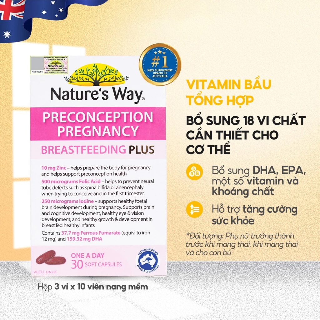 ✨Vitamin Bầu Nature's Way PreConception Pregnancy Breastfeeding Cho Mẹ Bầu & Sau Sinh 30 Viên/Hộp