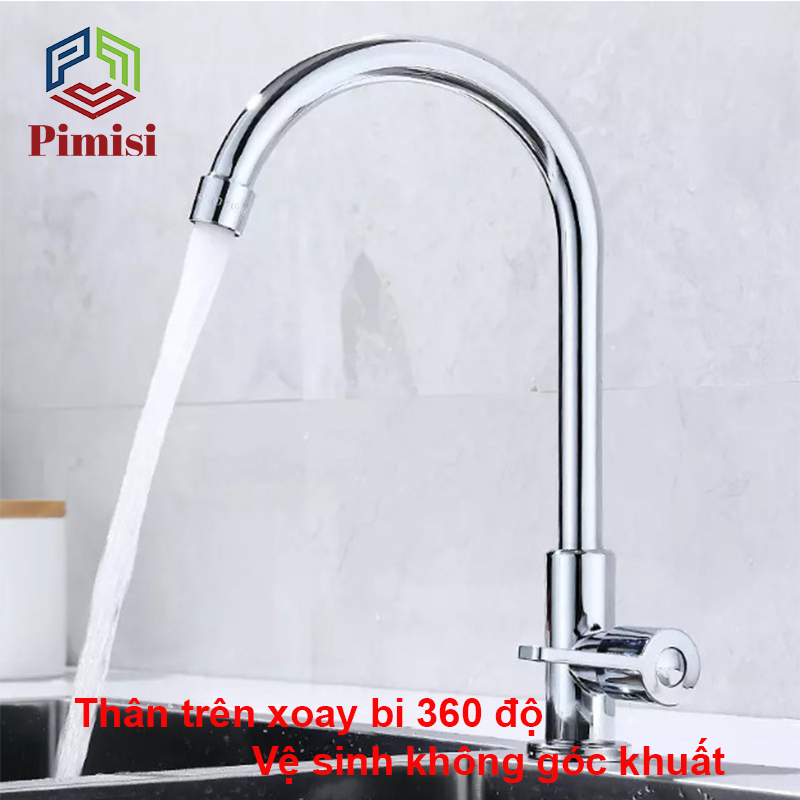 ✨Vòi Rửa Chén Lạnh 1 Đường Nước INOX 304 Pimisi Cao Cấp Mạ Xi Cr/Ni Sáng Bóng Cổ Xoay Bi Cấp Nước Cho Chậu Rửa Bát 1-2-3 Hố Trong Nhà Bếp Gắn Chậu Âm - Dương Bàn Đá Quay 360 Tăng Áp Kiểu Đơn Cổ Ngỗng Cần Cứng - Thân - Để To | Hàng chính hãng