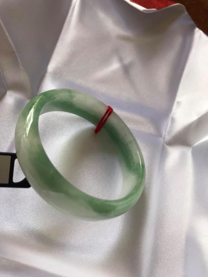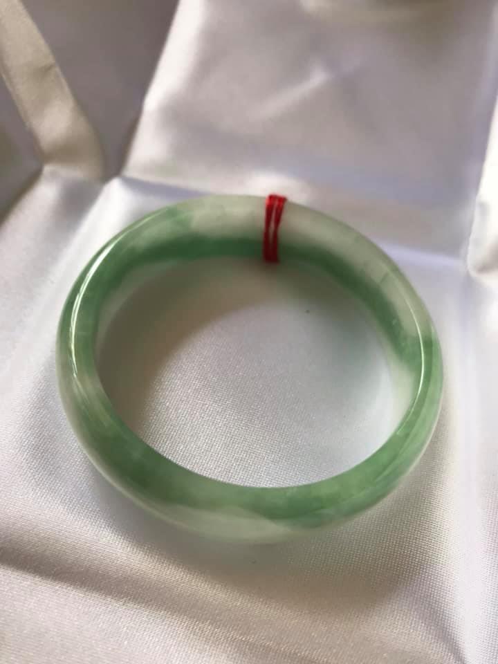VÒNG BẢN HẸ A SIZE 49 ĐÁ CẨM THẠCH TỰ NHIÊN MÀU XANH LÁ ĐẬM Ở GIỮA LAM TRẮNG ĐỀU VÒNG NỮ 42KG ĐẾN 52KG ĐEO Ạ Sản phẩm này là tài sản cá