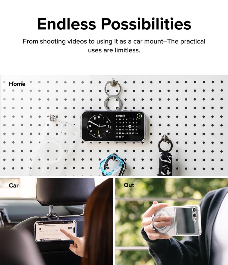 - Vòng hít từ tính RINGKE Smart Ring Magnetic có thể sử dụng đa năng nhiều cách như: giá đỡ điện thoại, móc treo điện thoại trên xe hơi, trợ lực cầm nắm thiết bị tốt hơn chống trơn tuột.