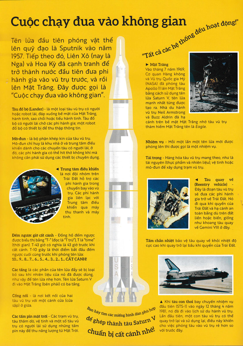 Tiếp đến, bạn đọc sẽ được gặp gỡ và làm quen với những phi hành gia nổi tiếng từng du hành vào không gian như Yuri Gagarin, Neil Armstrong... hay được tìm hiểu cuộc sống ngoài không gian ra sao, những thiết bị công nghệ hỗ trợ khám phá không gian như thế nào.
