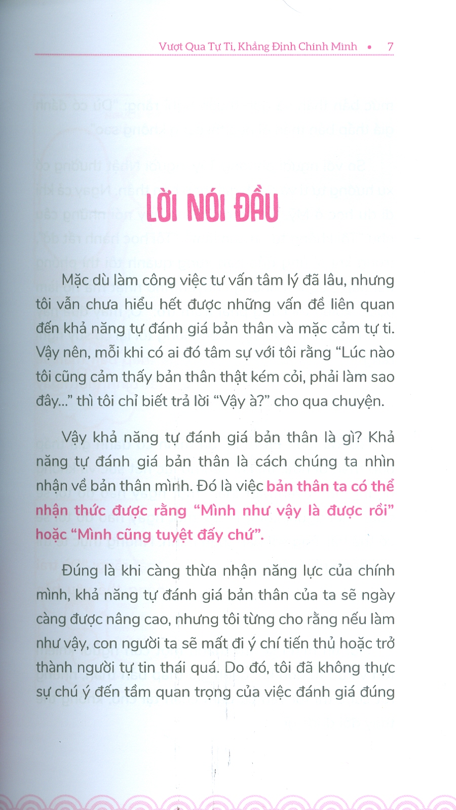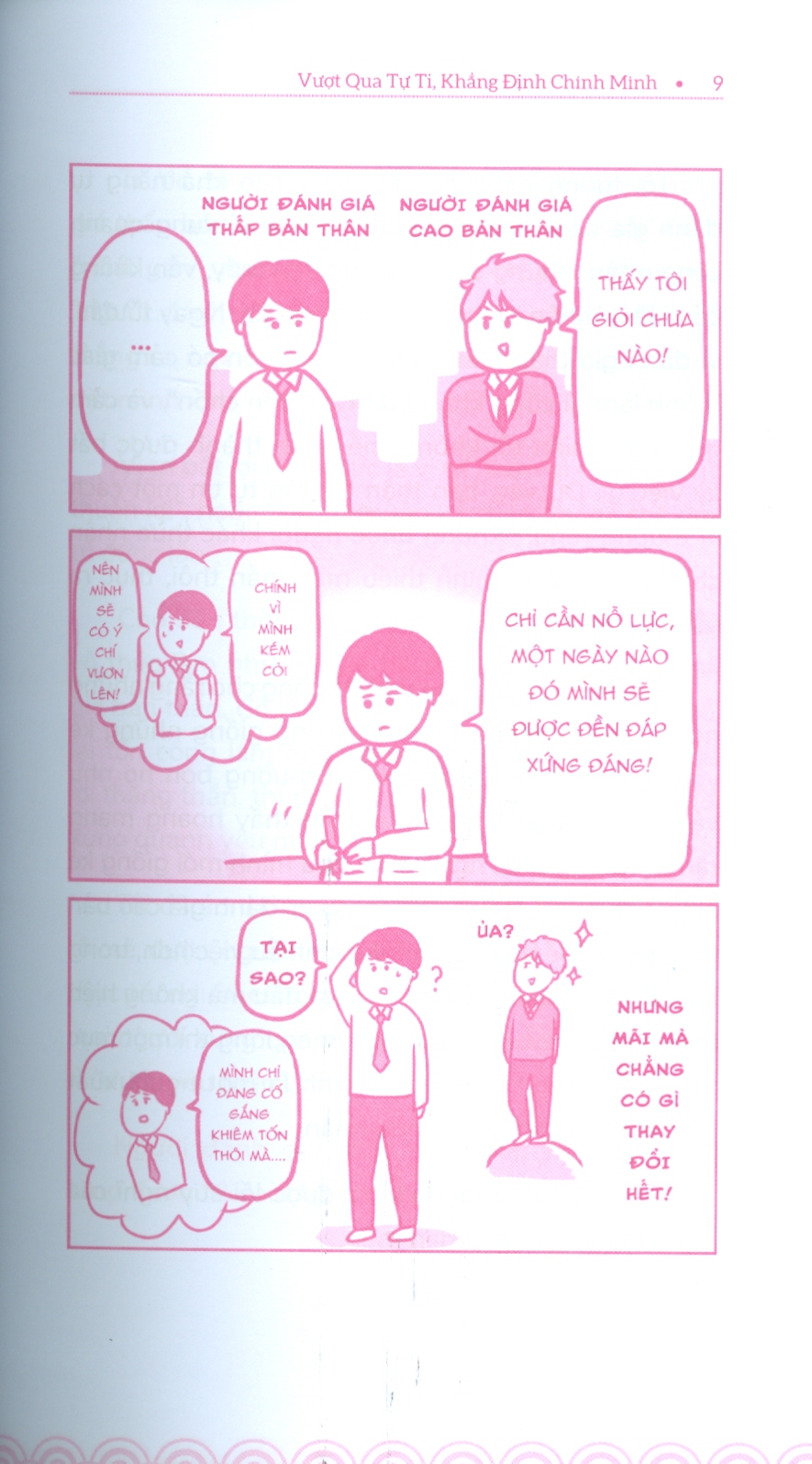 Bất kể trong công việc hay cuộc sống, tự tin luôn là yếu tố hàng đầu dẫn dắt chúng ta tới thành công. Thế nhưng, có không ít người lại có khuynh hướng đánh giá thấp bản thân, luôn tự chỉ trích chính mình, không ngừng bận tâm đến ánh mắt của người đời hoặc cố gắng tỏ ra khiêm tốn để được mọi người yêu mến. Bạn có đang rơi vào tình trạng tương tự như vậy không? Nếu có, "Vượt qua tự ti, khẳng định chính mình" là bí quyết giúp bạn thay đổi cuộc đời mình. Thông qua những hình ảnh minh họa sinh động, tác giả Nobuyori Oshima sẽ cung cấp nhiều phương pháp đơn giản mà hiệu quả nhằm giúp bạn từng bước nâng cao sự tự tin, biết cách đánh giá đúng mức bản thân và xây dựng cuộc sống mà bạn mong muốn.