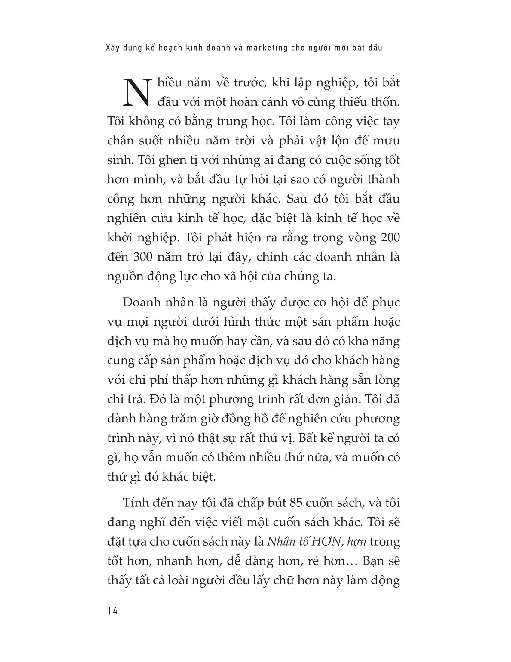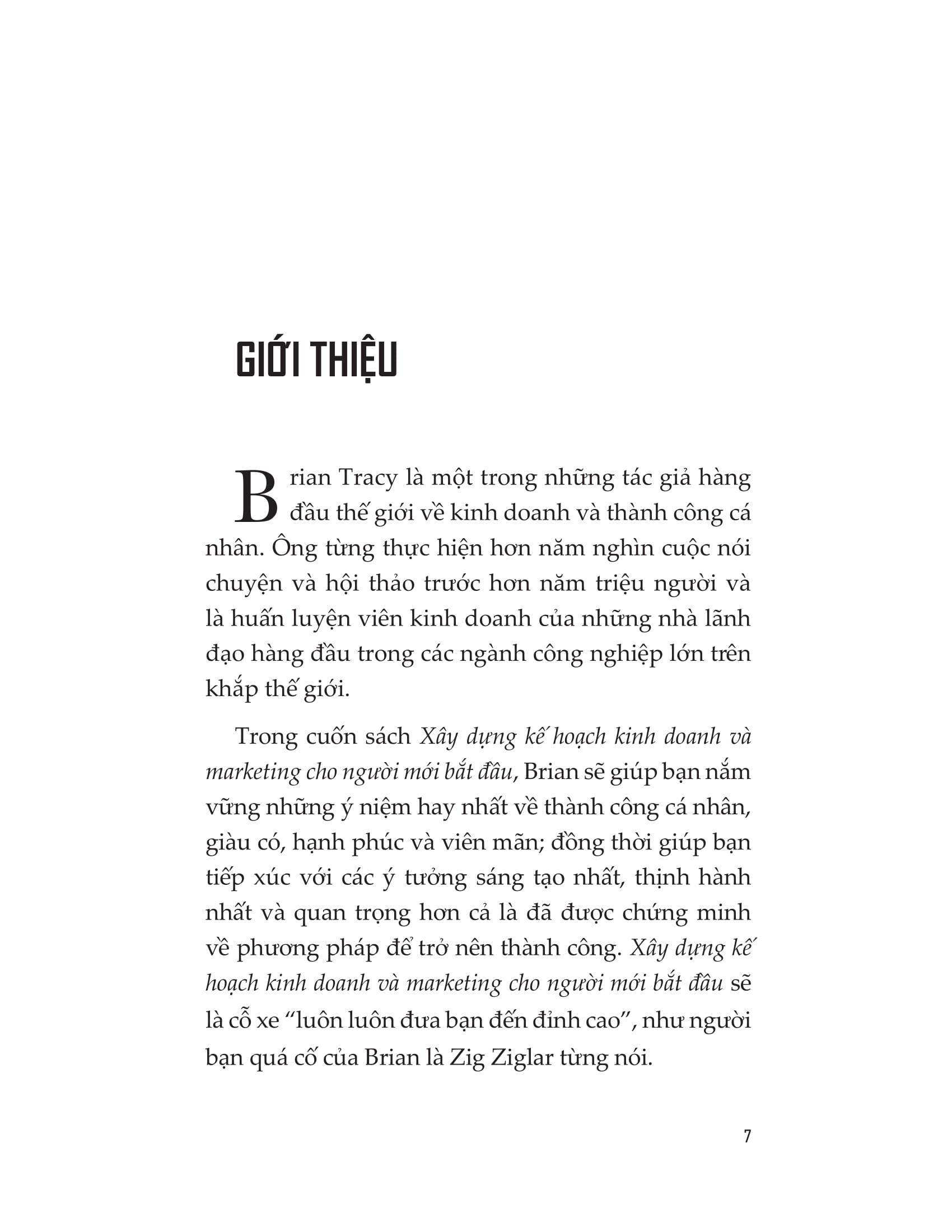 Trong cuốn sách « Xây dựng kế hoạch kinh doanh và marketing cho người mới bắt đầu », Brian sẽ giúp bạn nắm vững những ý niệm hay nhất về thành công cá nhân, giàu có, hạnh phúc và viên mãn; đồng thời giúp bạn tiếp xúc với các ý tưởng sáng tạo nhất, thịnh hành nhất và quan trọng hơn cả là đã được chứng minh về phương pháp để trở nên thành công.