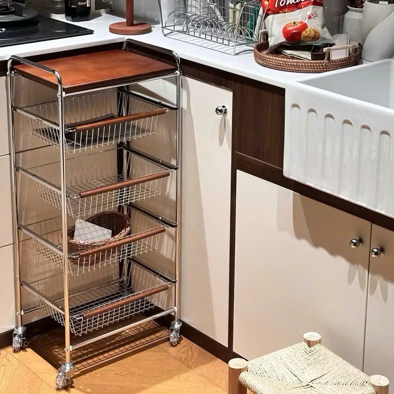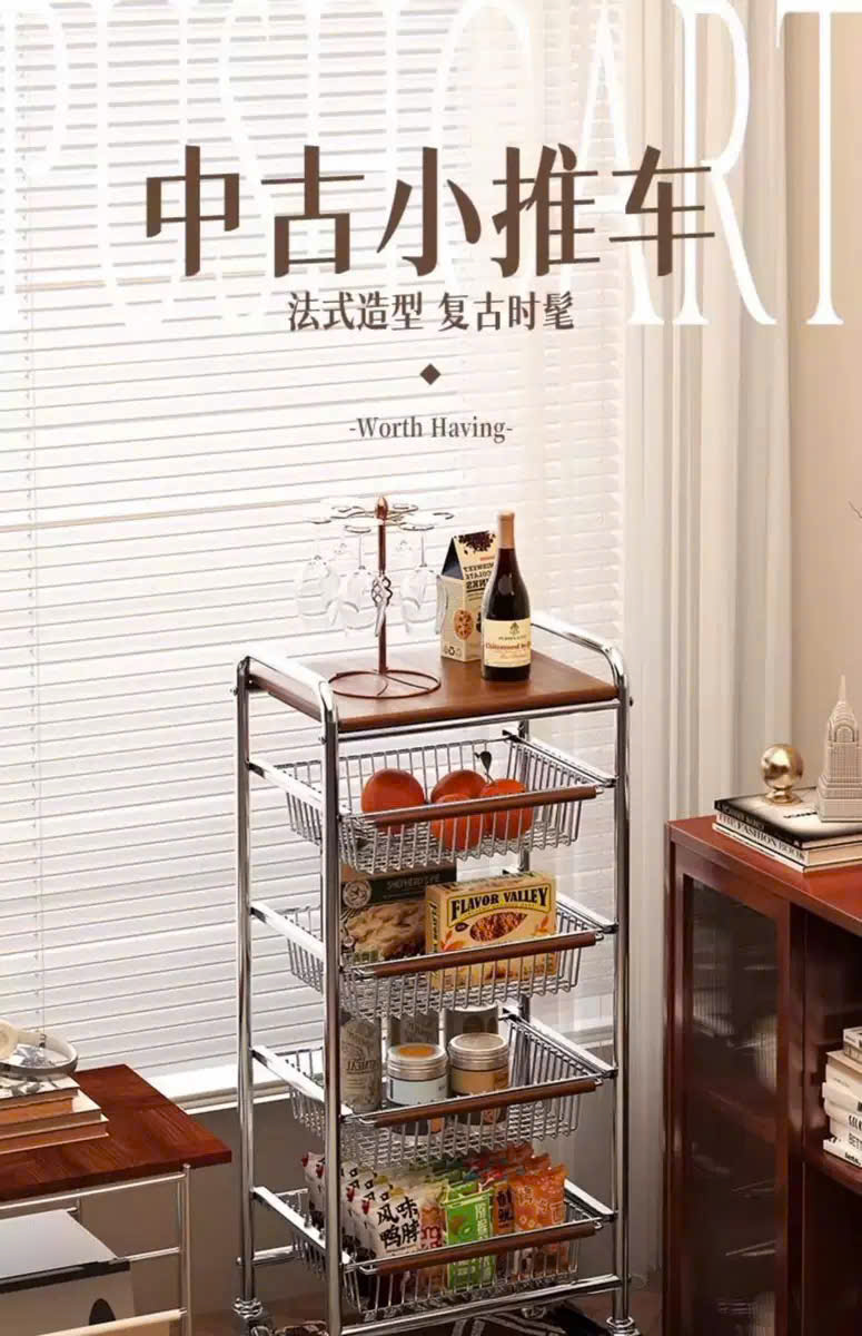✨Xe Đẩy Kệ Để Đồ Đa Năng Nhiều Ngăn Tầng Có Ván Gỗ Retro Vintage – Khung Kim Loại Chắc Chắn, Kệ Trang Trí Nhà Bếp Phòng Khách - HÀNG CHÍNH HÃNG MINIIN