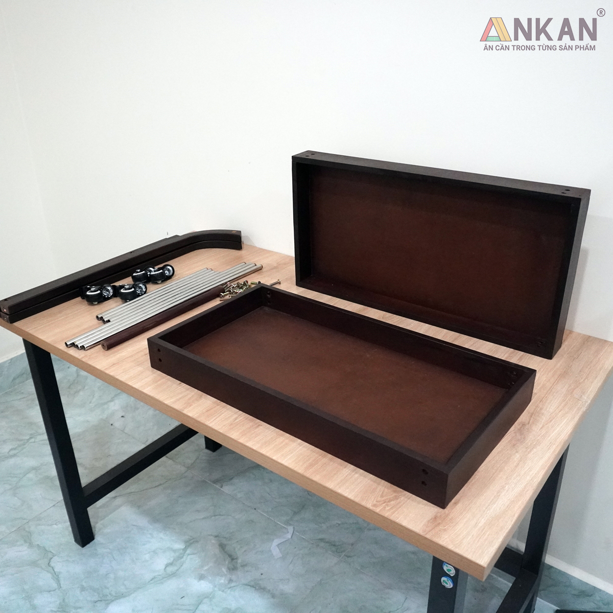 Xe đẩy rượu, nước uống, phục vụ tráng miệng, thức ăn, nước uống nhà hàng sang trọng Thương hiệu ANKAN đã bắt đầu mở bán từ hôm nay. Sản phẩm được sản xuất theo tiêu chuẩn và đơn đặt hàng của khách hàng quốc tế.      Xe đẩy rượu được sản xuất bằng gỗ tràm bông vàng loại tốt hơn 10 năm tuổi và Inox không gỉ cho sản phẩm hoàn toàn bền đẹp theo thời gian.  Xe đẩy rượu sử dụng bánh xe PVC loại cao cấp nhất cho phép xe đẩy nhẹ nhàng, không gây tiếng ồn. Hơn thế nữa bánh xe còn được trang bị khóa để giúp xe cố định 1 chỗ. Thông Tin Chi Tiết Xe Đẩy Rượu  Chất liệu: Inox, gỗ tràm bông vàng.  Màu sắc: Vàng Walnut.  Kích trước: Dài 60 x Rộng 35 x Cao 70cm Trọng lượng: 7kg    Đặc Điểm Sản Phẩm  Xe đẩy được thiết kế 2 ngăn   Có tay cầm thuận lợi cho người sử dụng dễ dàng di chuyển.  Bánh xe bọc cao su, giảm tiếng ồn tối đa   Thường dùng trong nhà hàng, khách sạn khu du lịch resort,