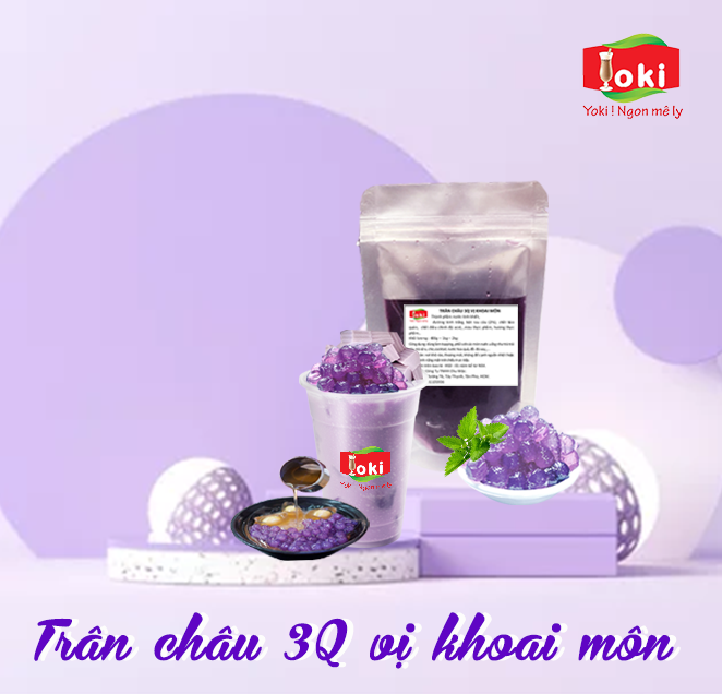Tuỳ vào mỗi loại thức uống mà người ta sử dụng loại Topping có hương vị phù hợp góp phần tăng thêm màu sắc và hương vị hấp dẫn riêng. Vậy bạn đã từng nghe đến Trân châu khoai môn 3Q Yoki chưa?